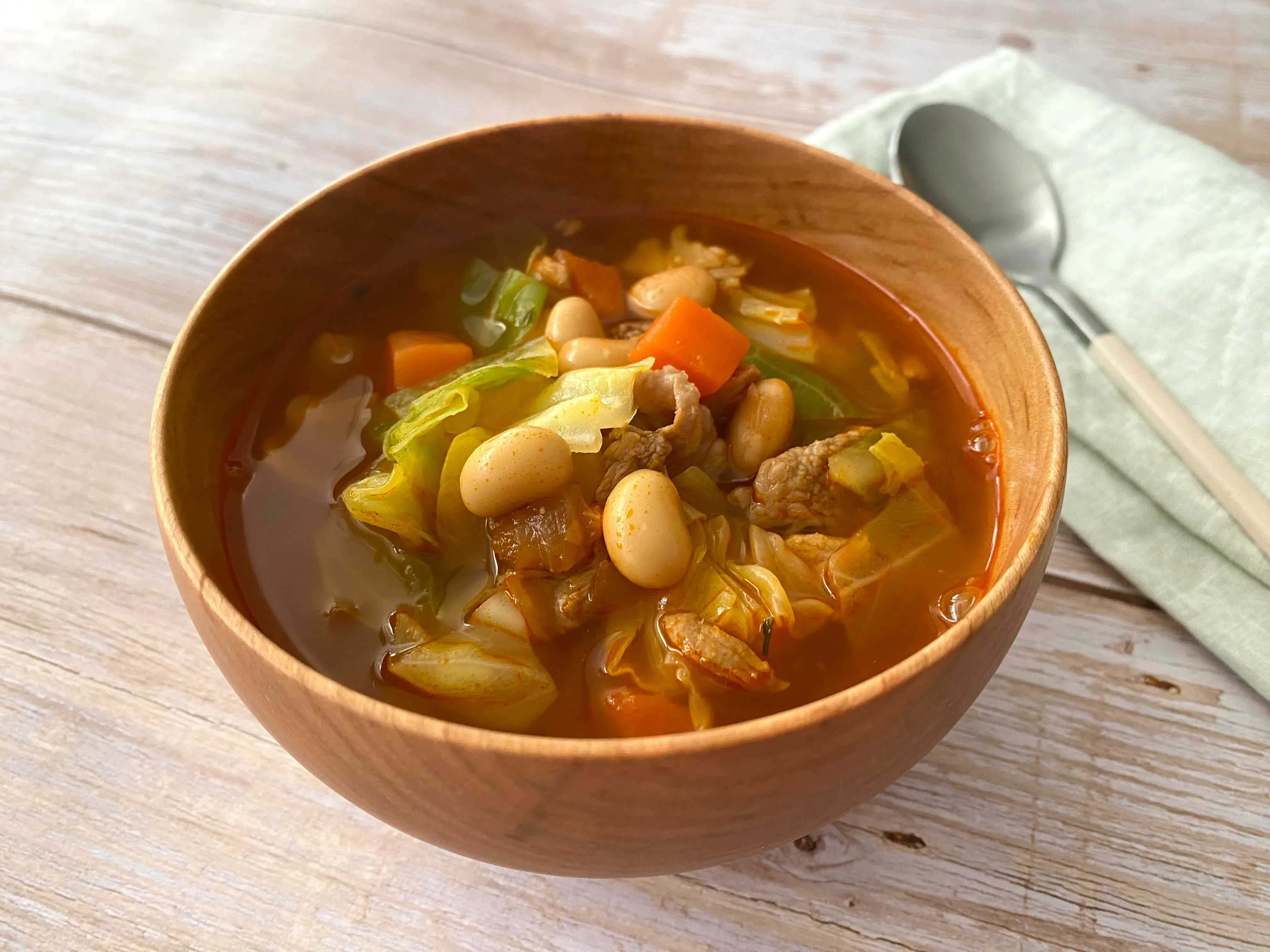 材料(2人分) ポークビーンズ・・・1/3パック程度 キャベツ・・・2枚 コンソメ・・・適量